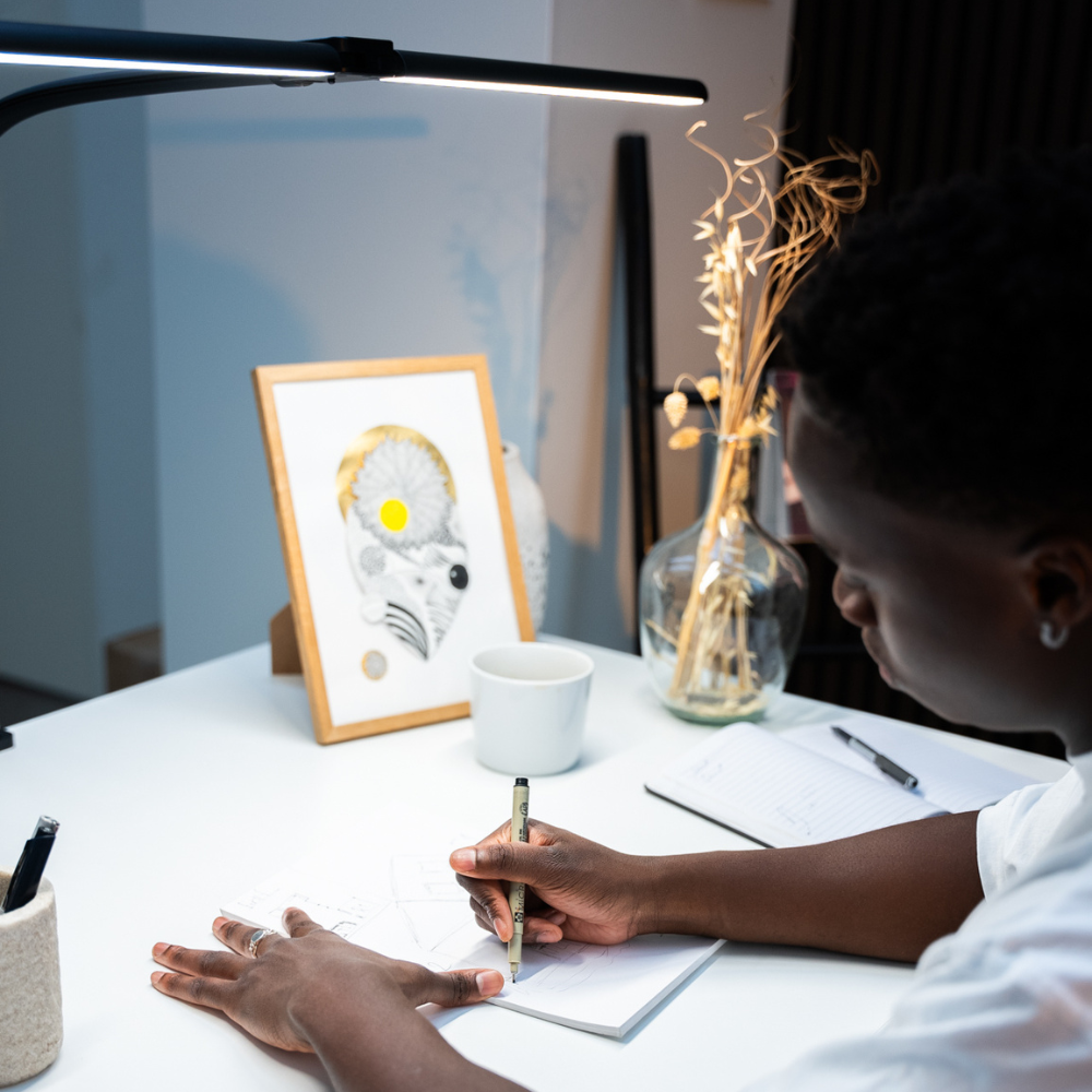 FocusLite™ er ikke bare en lampe. Det er din nye makker, når du skal fokusere, læse, arbejde eller studere – uden distraktioner. Den fleksible dobbeltarm giver dig fuld kontrol over lyset, så du altid har det præcis, som du vil. Perfekt til skrivebordet, natbordet eller hjemmekontoret. Den kan bruges over en 34 tommer skærm eller to skærme a 27 tommer, og har en bredde 80 cm og højde 65 cm.